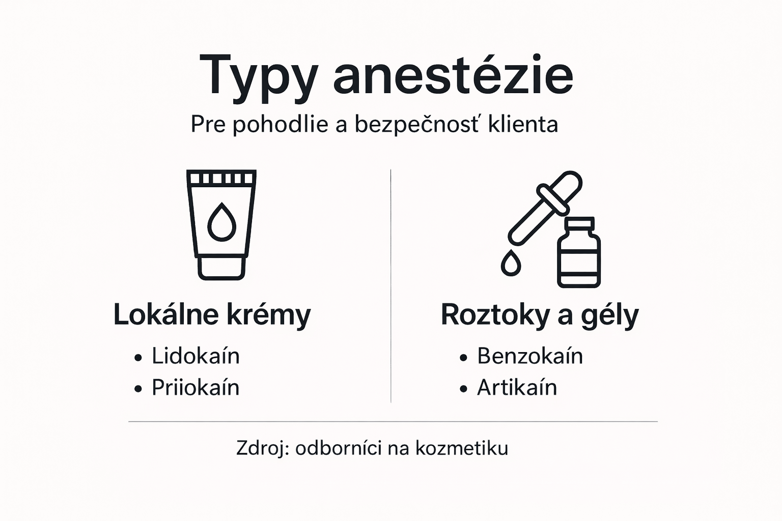 - Druhy anestetík používaných v kozmetike